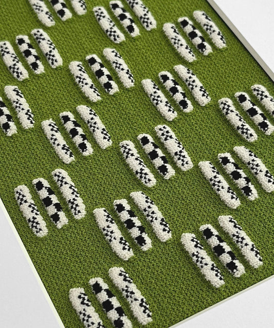Framed Knit Wall Hanging - Green Cityscape - A4