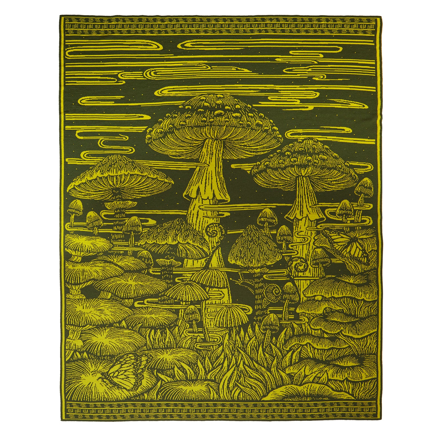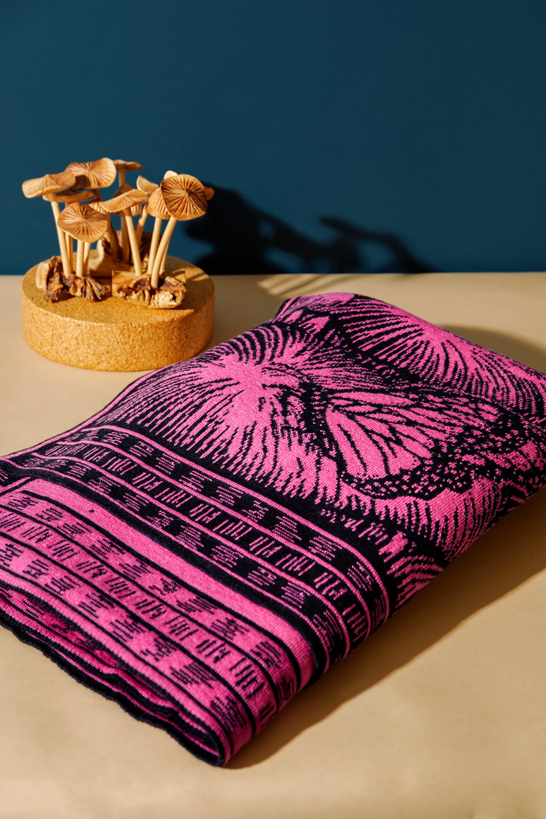 Natalia skilfully transformed her Mystic Mycelium woodcut print into a throw and elevated the fun, psychedelic nature of the mushroom design.
