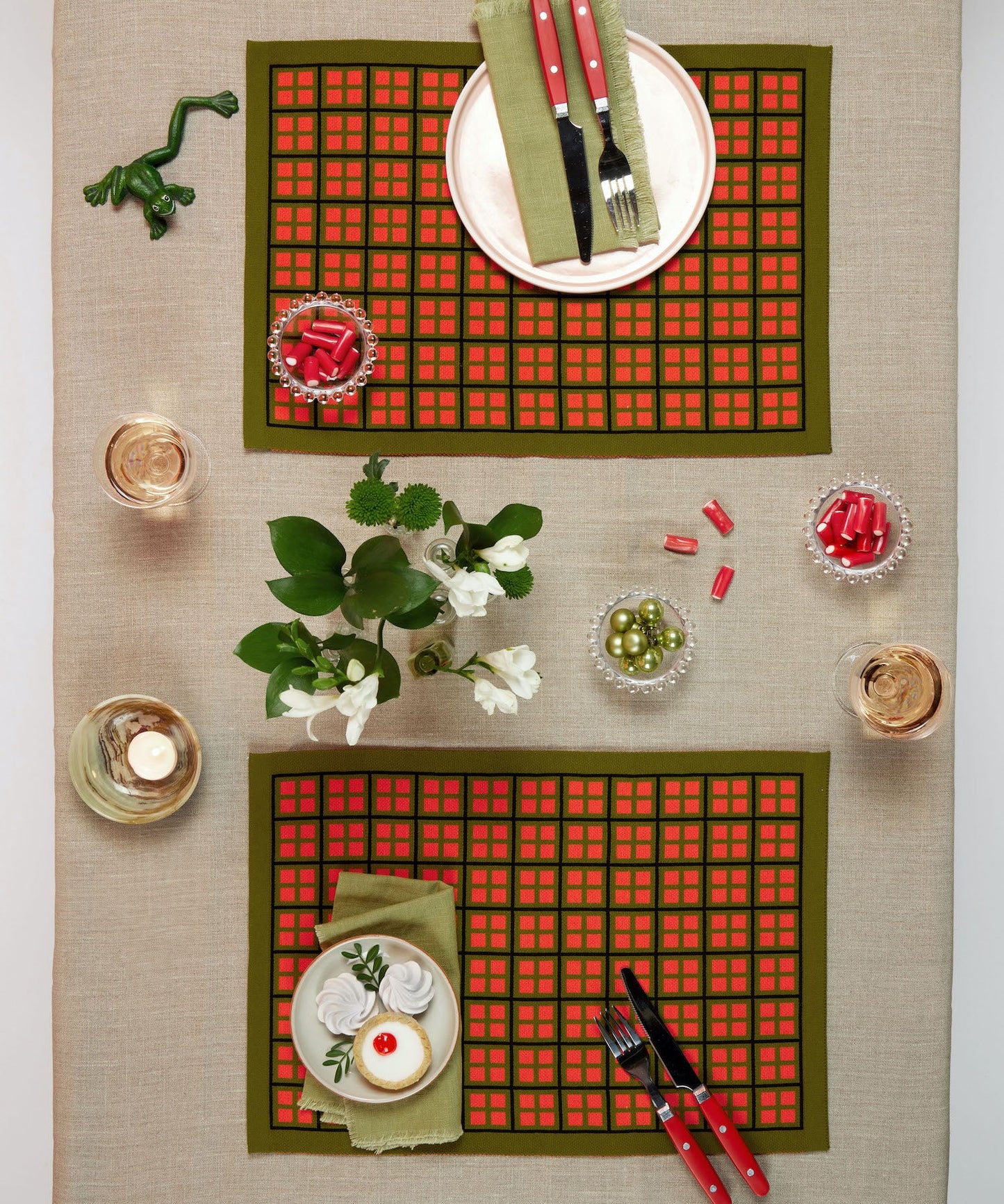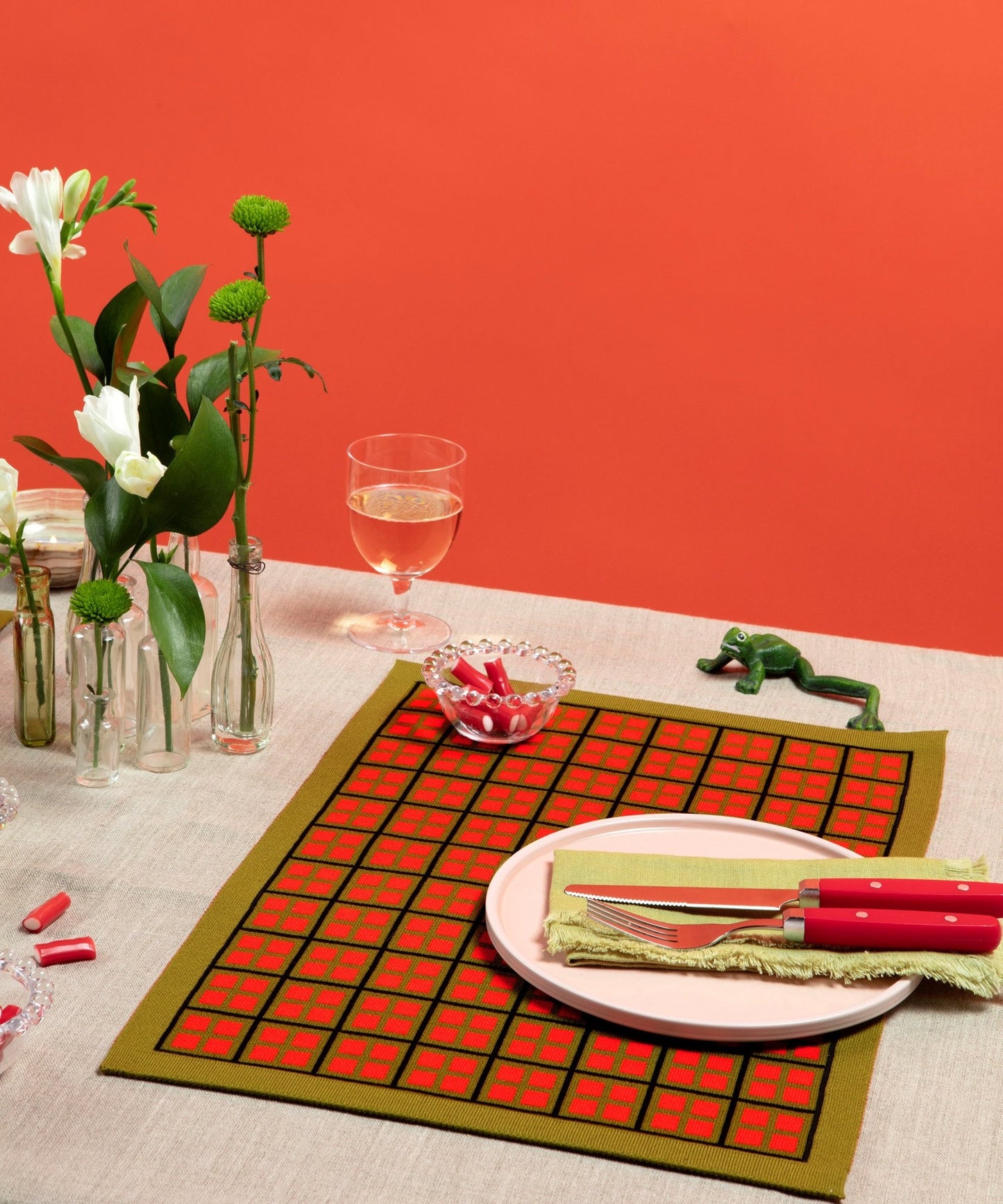 The viscose used for the knitted placemats is the ECO-VERO Lenzing variety, which is currently the most sustainable form of manufacturing the yarn, with less environmental impact.